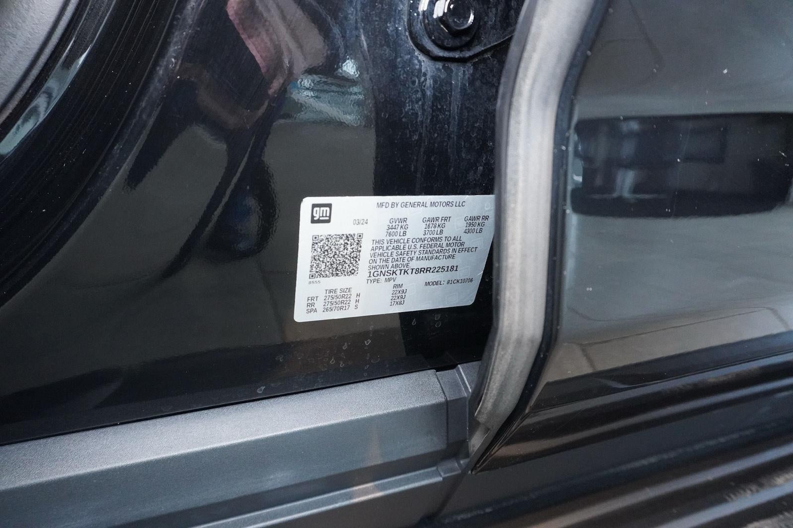 This 2024 Chevrolet Tahoe High Country, has a Black exterior and an Jet Black interior color. 35,115 miles. Stock Number D265208A. You can connect with us by calling (585) 505-6772. No Accidents! One Owner! Preferred Equipment Group 3LZMemory SettingsFront High-Back Reclining Bucket Seats3rd Row 60/40 Power-Folding Split-Bench SeatPower Release 2nd Row Bucket SeatsDriver and Front Outboard Passenger AirbagsChrome Door Handles with Body-Color StripColor-Keyed Carpeting Floor Covering1st and 2nd Row Color-Keyed Carpeted Floor MatsRemote StartBright Front and Rear Door Sill PlatesRear Camera Mirror WasherFloor ConsoleInside Rearview Auo-Dimming Rear Camera MirrorOutside Heated Power-Adjustable MirrorsSafety Alert SeatChevrolet Infotainment 3 Premium System RadioHill Descent ControlWireless ChargingHeated 2nd Row Outboard SeatsHeated Steering WheelAdaptive Cruise ControlDual Exhaust SystemPower Tilt and Telescopic Steering ColumnWrapped Steering Wheel2-Speed Active Electronic Autotrac Transfer CaseWheels: 22" X 9" Sterling Silver Premium PaintedPerforated Leather Seat TrimLED Daytime Running LampsHands-Free Rear Power Programmable LiftgateSiriusXM with 360LEnhanced Driver Information CenterRear Cross Traffic AlertUniversal Home RemoteEnhanced Automatic Emergency BrakingLane Change Alert with Side Blind Zone AlertRear Pedestrian AlertBose 10-Speaker Centerpoint Surround Audio System FeatureHD Surround Vision15" Diagonal Multi-Color Head-Up Display275/50R22SL AS BW TiresMagnetic Ride Control Suspension Safety and Security Forward collision mitigation - Forward thinking. You look away for just a second and suddenly the vehicle in front of you has stopped. That's when the forward collision mitigation system comes to life. When it senses an impending impact, it will activate a combination of features to help prevent or reduce the severity of an accident. Forward collision mitigation is always looking ahead. Pedestrian impact prevention - An extra step toward safety. Pedestrians don't always stop, look, and listen, but with Pedestrian Impact Prevention, your vehicle is equipped to better see them and avoid them. This system constantly monitors the road ahead to identify and track pedestrians. It projects that image to an interior display screen, AND should an impact become likely, Pedestrian impact prevention takes steps to avoid a collision. Rear camera with washer - Watching your back! The rear camera helps you see obstacles and hazards you otherwise couldn't by showing enhanced images of what is behind you. Even if there are sloppy conditions, the washer keeps the camera's view clean. Rear camera with washer is an extra set of eyes that's both convenient and safeTechnology and Telematics Apple CarPlay/Android Auto smart device wireless mirroring Mobile hotspot - WiFi on the fly. Connect your devices to the Internet through your vehicles private mobile hotspot and take the internet wherever your journey takes you, without eating up your data allowance. Find the hotspot with mobile hotspot. SUSPENSION, MAGNETIC RIDE CONTROL, EMISSIONS, CONNECTICUT, DELAWARE, MAINE, MARYLAND, MASSACHUSETTS, NEW JERSEY, NEW YORK, OREGON, PENNSYLVANIA, RHODE ISLAND, VERMONT AND WASHINGTON STATE REQUIREMENTS, ENGINE, DURAMAX 3.0L TURBO-DIESEL I6, TRANSMISSION, 10-SPEED AUTOMATIC, GVWR, 7600 LBS. (3447 KG), REAR AXLE, 3.23 RATIO, WHEELS, 22" X 9" (55.9 CM X 22.9 CM) STERLING SILVER PREMIUM PAINTED, BLACK, SEATS, FRONT BUCKET, JET BLACK, PERFORATED LEATHER SEATING SURFACES 1ST AND 2ND ROW, AUDIO SYSTEM, CHEVROLET INFOTAINMENT 3 PREMIUM SYSTEM WITH GOOGLE BUILT-IN COMPATABILITY, FUEL, DIESEL B20, ENGINE BLOCK HEATER, HEATER AIR SYSTEM, HEAT/DEFROST, 1.5 KW, BATTERY, 850 COLD-CRANKING AMPS WITH 95 AMP HOUR RATING, ALTERNATOR, 250 AMPS, EXHAUST, SINGLE SYSTEM, SINGLE-OUTLET, LPO, WHEEL LOCKS, SET OF 4, ACTIVE AERO SHUTTERS, UPPER AND LOWER, SUNROOF, POWER PANORAMIC, DUAL-PANE, TILT-SLIDING, LPO, MOLDED SPLASH GUARDS, LICENSE PLATE FRONT MOUNTING PACKAGE, LPO, A